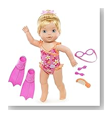 Zapf Baby Born Mommy Look I Can Swim DollThis cutie can swim! Perfect for in the bathtub or swimming pool, your youngster’s new best friend can paddle and stroke from one side to the other, swimming completely on her own. Her arms move in tandem and her legs kick while wearing a pair of neon-pink, ultra-cute flippers. She can even wear matching goggles! Afterwards, your baby can care for her dolly’s hair with a comb and 2 awesome hair accessories.